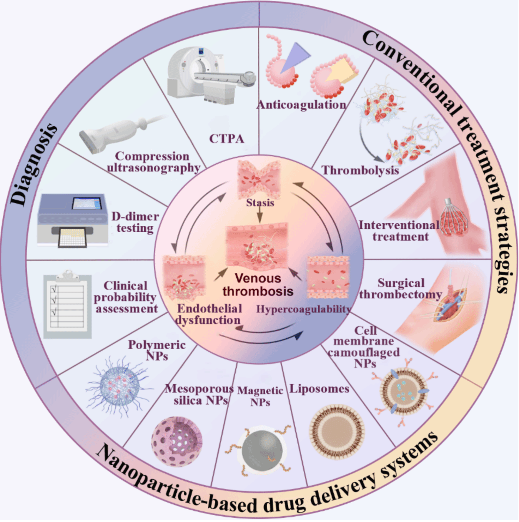 团队在《Chinese Chemical Letters》(中科院1区Top期刊,影响因子8.9)发表了题为“Drug delivery systems for the treatment of venous thrombosis”的综述论文,进一步分析了针对VT的新型药物递送系统研究进展,评估了该领域的发展前景与挑战。湖北中医药大学2024级硕士研究生杨丽、龚愉鸿为论文共同第一作者,湖北时珍实验室贺建华副教授为论文通讯作者。